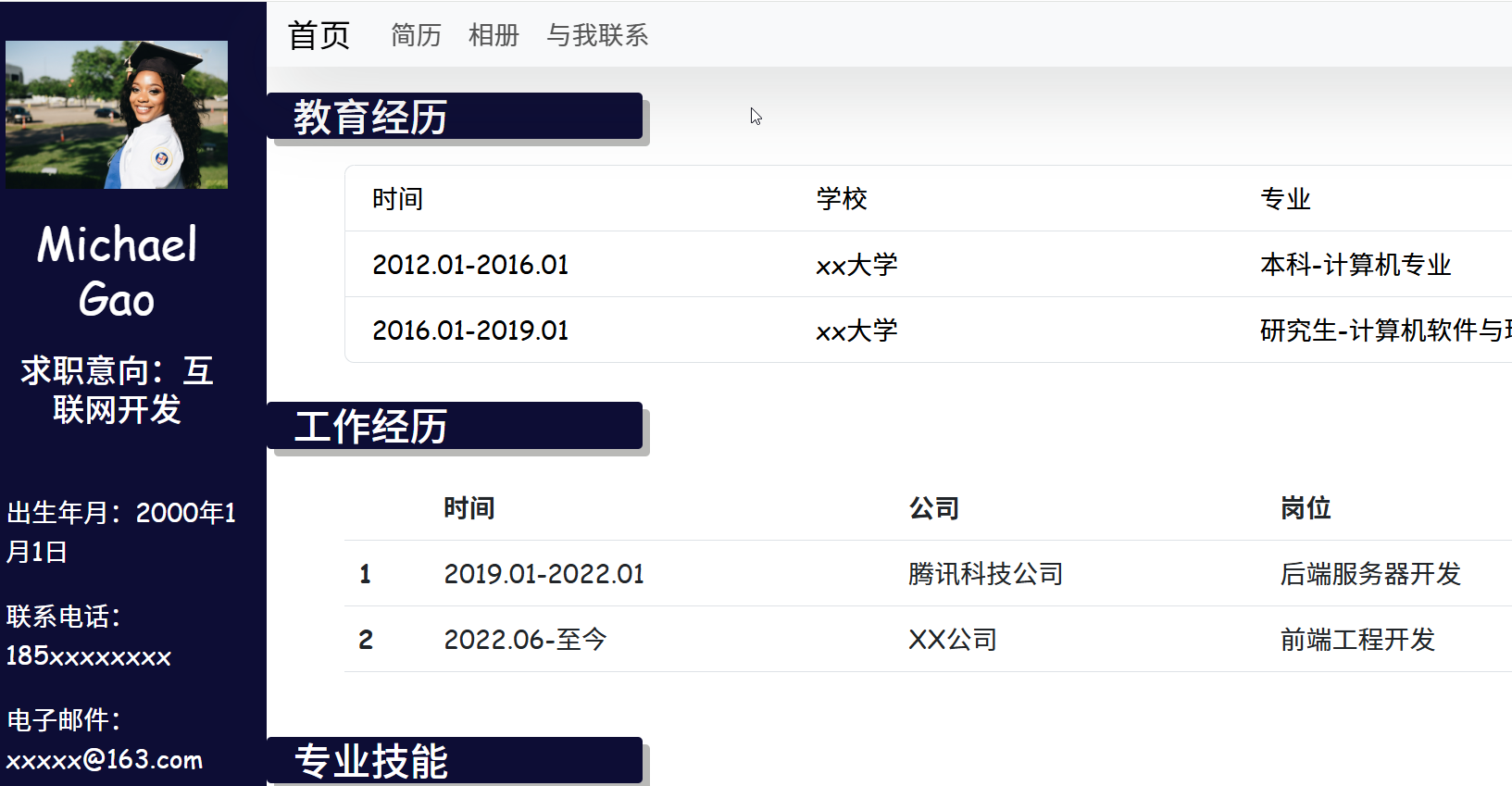 我这里已经写好并开源了一个简历模板——个人简历模板,有需要的朋友可以参考一下。