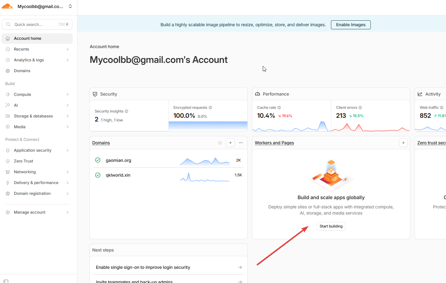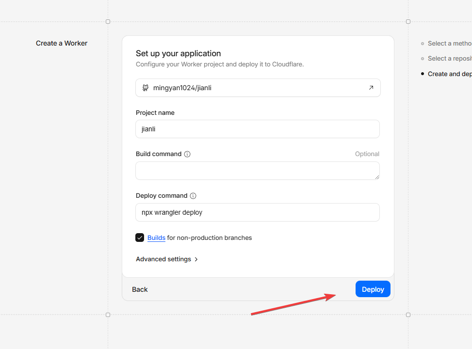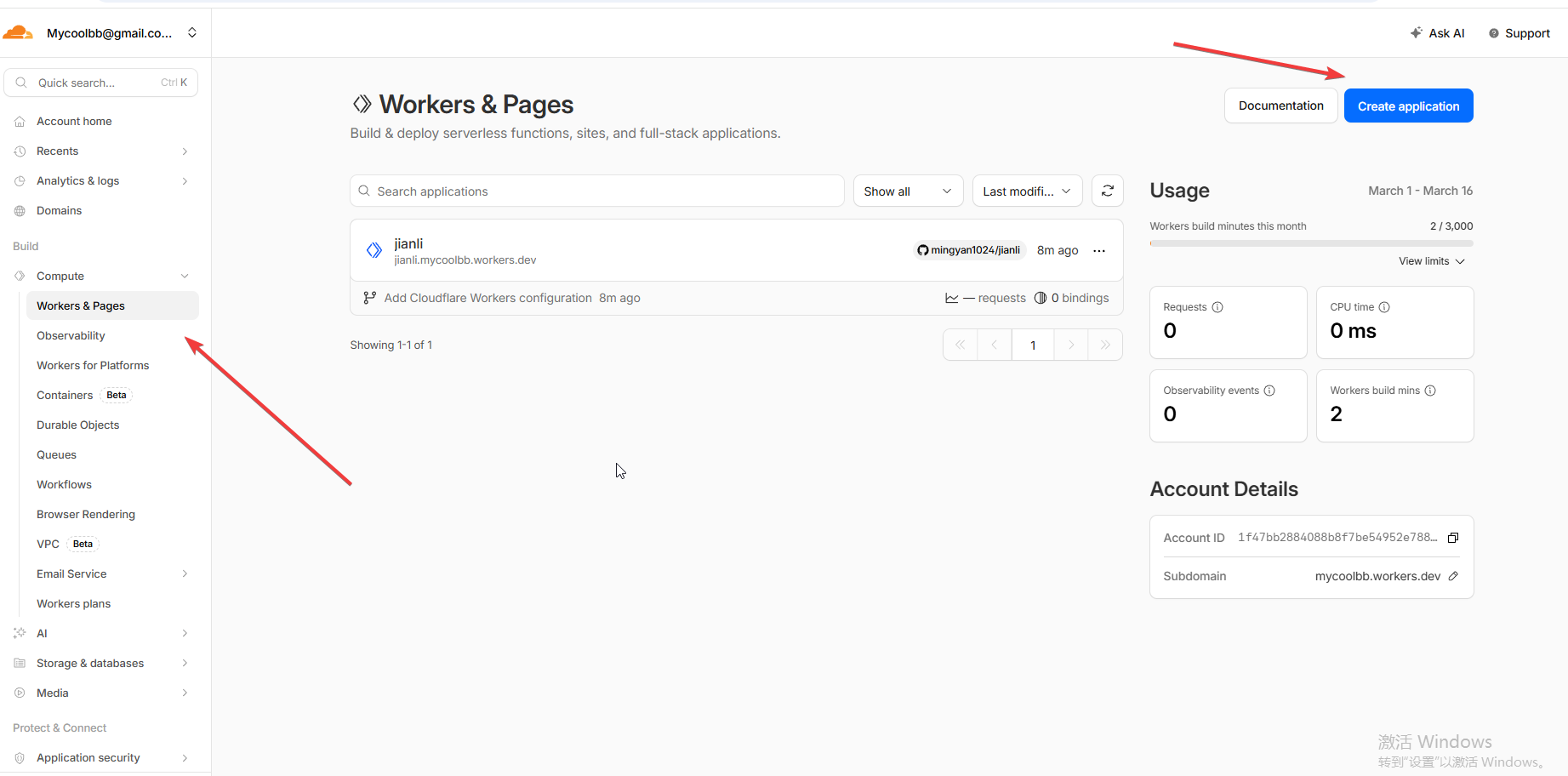 进入CF平台的账户界面,在 workers and pages 这里,创建一个应用。