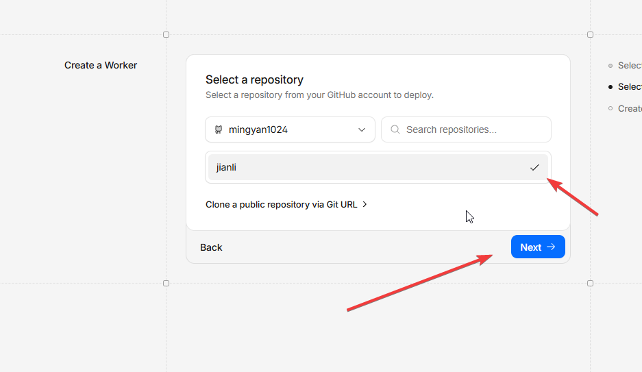 点击 GitHub 这个选项,连接你的 Git 仓库。