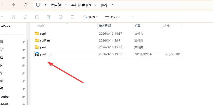 将刚才的简历项目打包,然后,上传至CF平台。请务必上传压缩包。上传文件夹以及其它形式都不太方便。