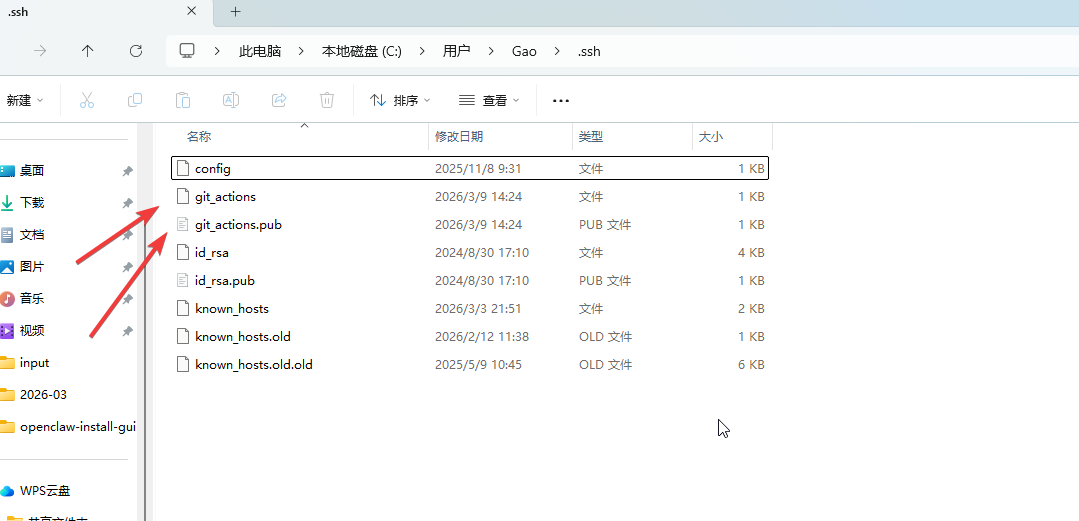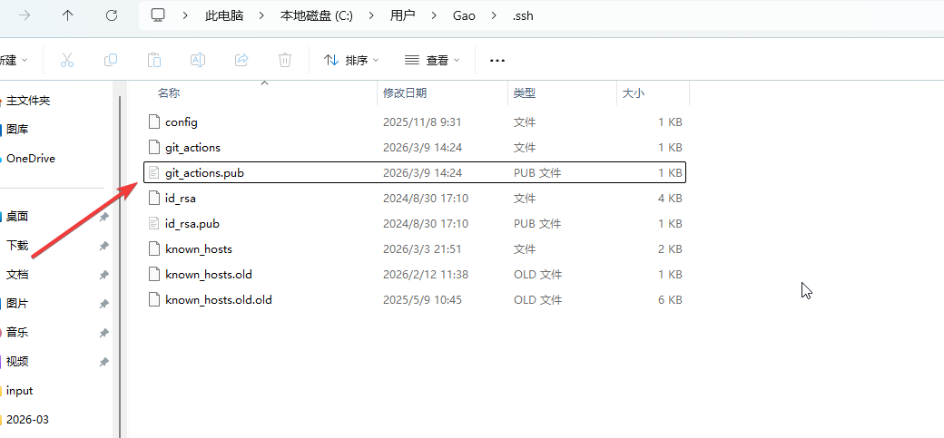 找到git_actions.pub文件,把里面的内容(也就是公钥)copy出来。