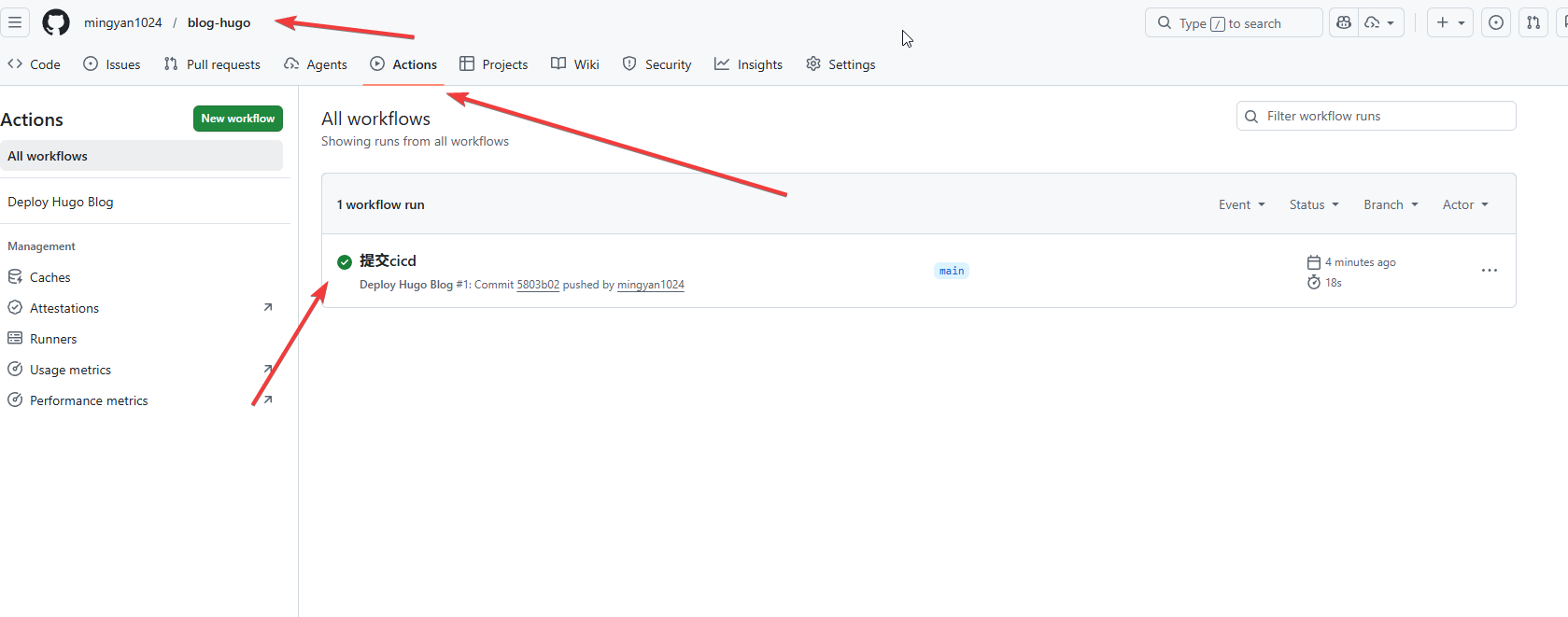 稍等一会,你会在 git 仓库的 actions 标签下,看到已经跑好的流水线。